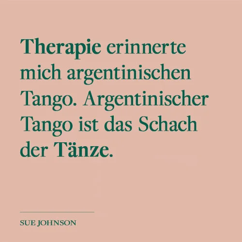 Therapie erinnerte mich an argentinischen Tango. Argentinischer Tango ist das Schach der Tänze. Er ist sehr schwierig, und doch können sich Fremde mit dieser unglaublichen Synchronität gemeinsam bewegen. So ist es auch in der Paartherapie. Jetzt konnte ich die schöne Musik sehen, die da spielt.