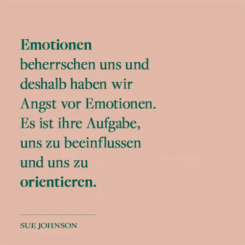 Sue Johnson: Bei vielen Therapiemodellen scheint es mir, dass Emotionen als der Feind dargestellt werden. Sie sind etwas, das man kontrollieren muss, man muss sie wegmeditieren, man muss Bewältigungsmechanismen schaffen. Natürlich muss man seine Emotionen regulieren.